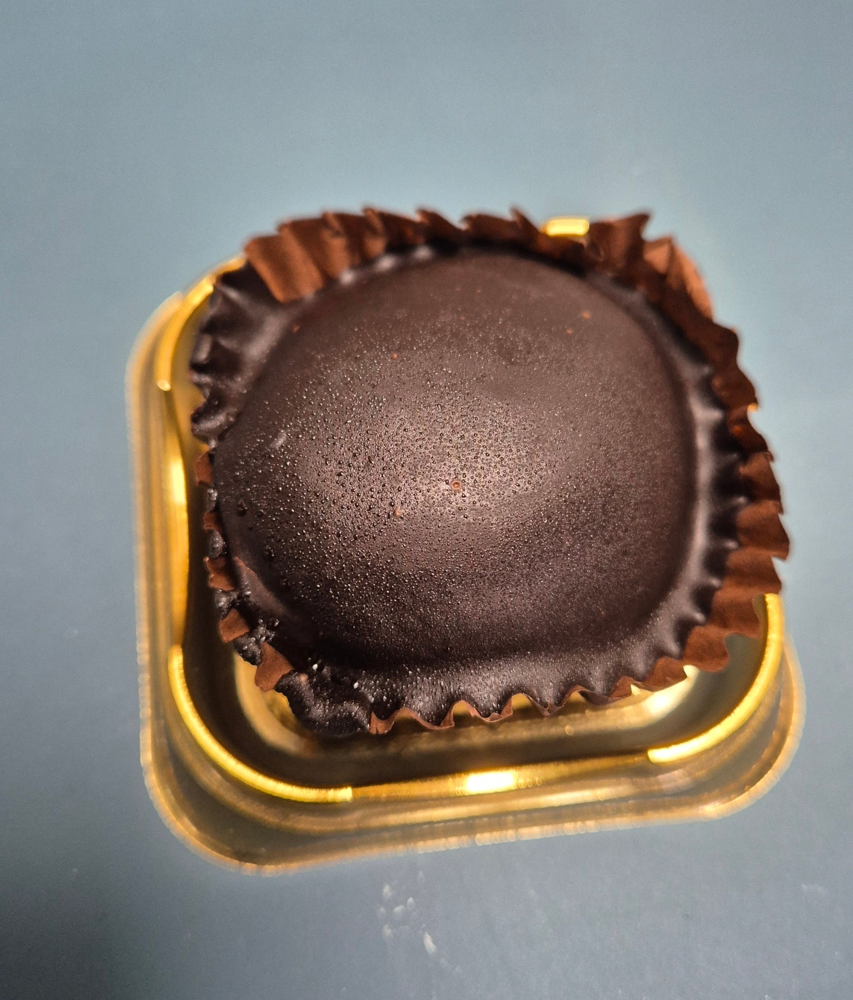 시식을 위해 냉장고에 잠시 넣어두었더니, 초콜릿 표면에 송골송골 식은땀처럼 물기가 맺혀있어 차가운 상태로 즐기기 딱 좋아 보였습니다.