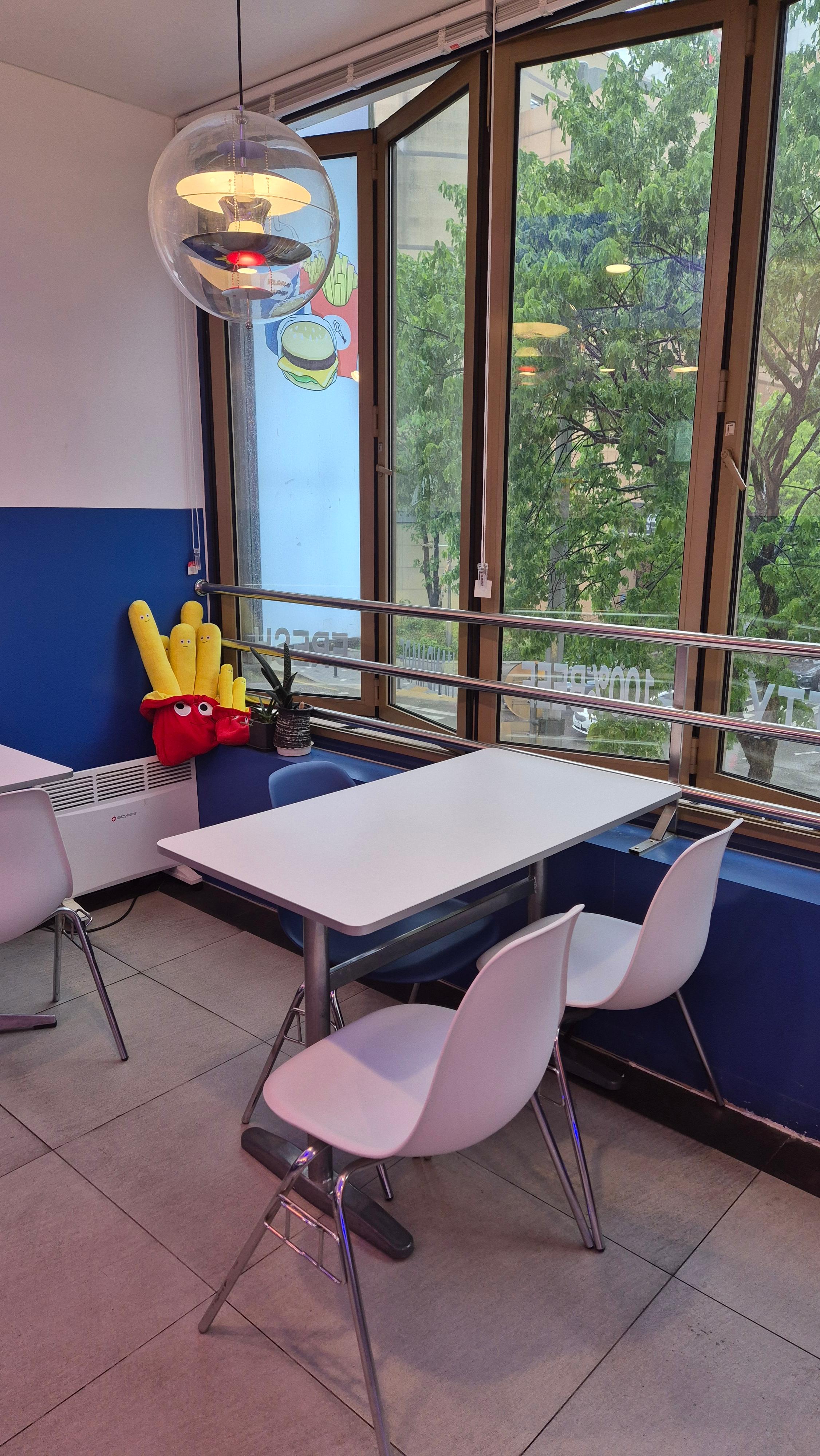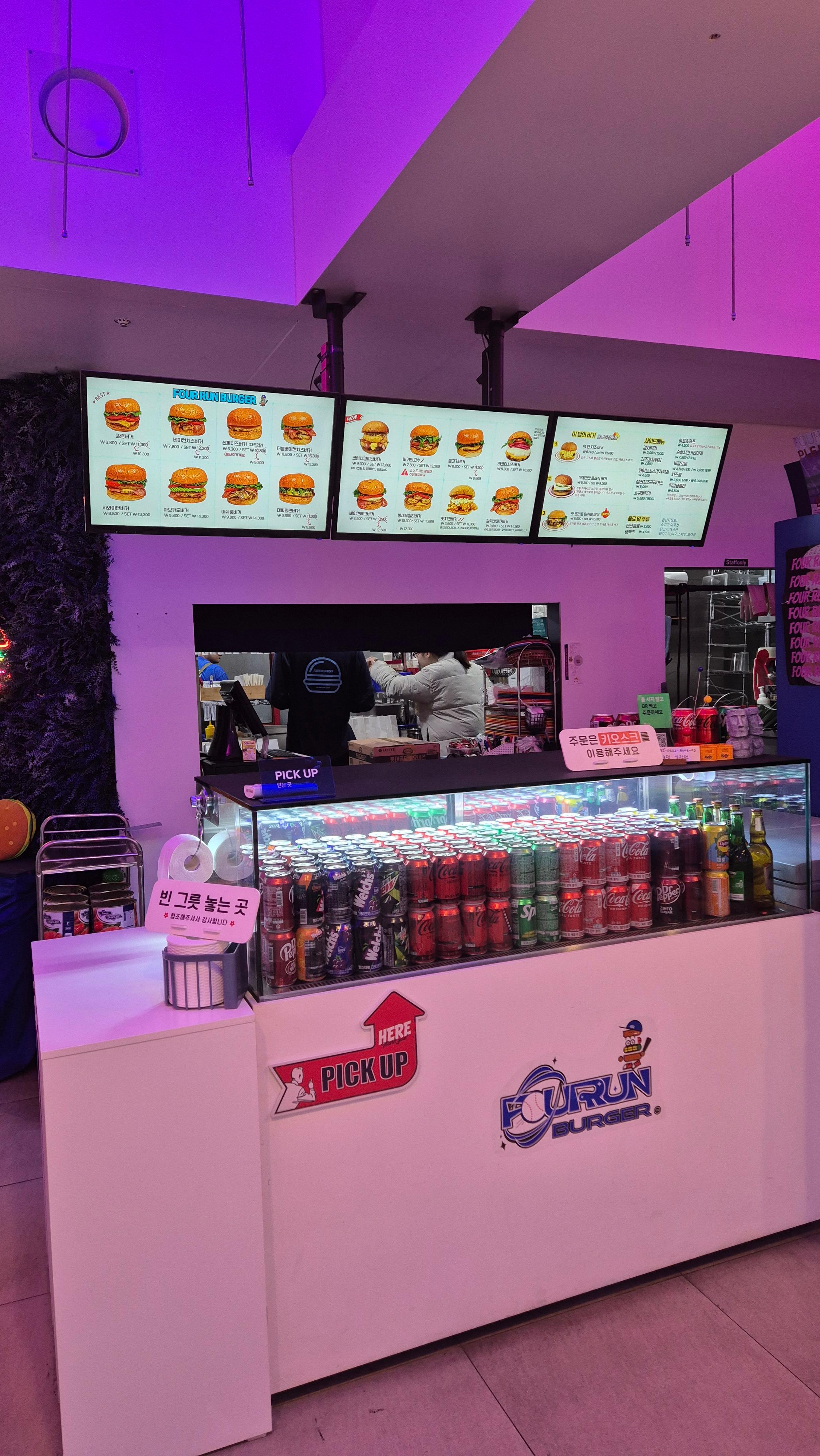 매장 안에는 고전 게임을 즐길 수 있는 게임기도 마련되어 있고, 버거집 특유의 장난스럽고 유쾌한 분위기를 살린 인테리어가 꽤 잘 구성되어 있어요.
